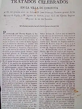 Кордовский договор (исп. Tratados de Córdoba) — мирный договор, завершивший войну мексиканского народа за независимость. Подписан 24 августа 1821 года в городе Кордова (Веракрус, Мексика) испанским наместником в Мексике Хуаном О’Доноху и лидером мексиканских феодально-клерикальных кругов Агустином Косме Дамианом де Итурбиде-и-Арамбуру.