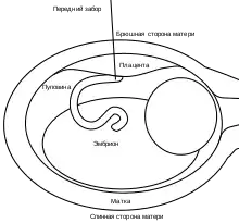Через переднюю брюшную стенку беременной после инфильтрационной анестезии под контролем ультразвукового аппарата производят прокол тонкой пункционной иглой, попадают в сосуд пуповины, получают до 5 мл. крови.