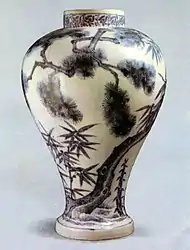 Любовь корейцев к природе находит своё отражение в росписях сосудов XVII—XIX веков. Пейзажи, цветущие лотосы и хризантемы, бамбук и гроздья винограда, птицы, рыбы, летящие среди цветов мотыльки — всё это отражает глубокие чувства народа, который, творя в тяжёлых условиях феодального режима, все же сохранял на протяжении веков любовь к прекрасному.