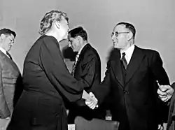 Признание международной юридической общественностью таланта В. М. Корецкого выразилось в избрании его членом Комитета ООН по прогрессивному развитию международного права 31 января 1947 года[8]. Таким образом, Владимир Михайлович вошёл в историю как первый член Комиссии среди отечественных юристов-международников[6]. Первая сессия Комиссии прошла с 12 апреля по 9 июня 1949 года; на ней В. М. Корецкий занимал должность первого вице-председателя[9].