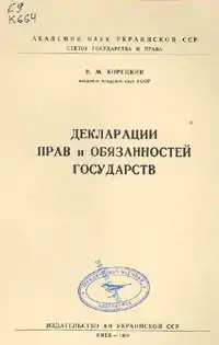 - Корецкий, В. М. Декларации прав и обязанностей государств. — Киев: Изд-во АН Украинской ССР, 1962. — С. 153.