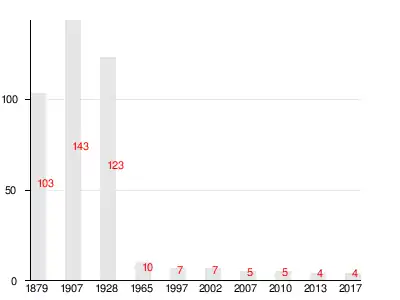 Число жителей по семейным спискам 1879 г.: 58 м. п., 45 ж. п.; по приходским сведениям 1879 г.: 59 м. п., 48 ж. п.[3]