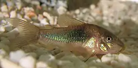 - Золотистый сомик[3][4] (Corydoras aeneus)