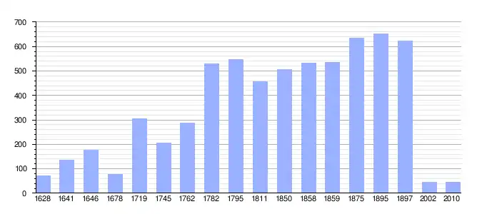 В 1897 году, на момент переписи населения, в селе Корине было 1360 жителей: 624 мужчины и 736 женщин[58].