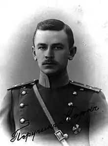- Генерального штаба капитан — 15.08.1916 (старш. с 14.06.1915; с 30.09.1917 — старшинство с 14.06.1914)[18]