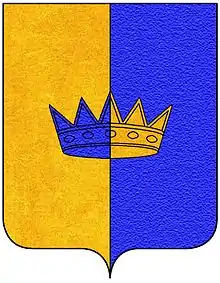 ![]() Герб состоит из двух половин: слева — золотой, справа — лазурной. Посередине находится корона, символ венецианских Корнаро. | |