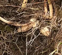 Корневи́ще — видоизменённый побег, обычно подземный, с чешуевидными, недоразвитыми или рано отмирающими листьями, верхушечными или пазушными почками, придаточными корнями. Корневище выполняет функцию запасания питательных веществ, вегетативного возобновления и размножения. У дерева корневищем называют основной корень (продолжение ствола), а также часть корней, выступающую на поверхности земли[1].