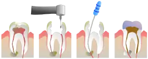 Наиболее частыми причинами повреждения или отмирания пульпы являются наличие трещины, либо глубокой кариозной полости в зубе[4]. В стоматологической практике в процессе эндодонтического лечения острого гнойного и хронического пульпита производится механическая и медикаментозная обработка системы корневых каналов зуба (депульпирование — удаление сосудов и нерва) с последующей пломбировкой (герметичной обтурацией) канала(ов). Данный вид лечения исполняется в двух вариантах: