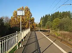 На подходе к платформе со стороны Мельничного Ручья, за 500 метров до переезда, от главного пути на север отходит подъездной путь.