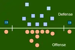 Вместе с дефенсив тэклами, дефенсив эндами, миддл лайнбекерами, аутсайд лайнбекерами, сэйфти в состав Линии защиты. Дефенсив энды и дефенсив тэклы, вместе называются линией защиты, а корнербеки и сэйфти – сэкондари ( англ. secondaries), или дефенсив бэки (англ. defensive backs).