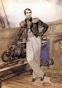 ![]() К. П. Брюллов. В. А. Корнилов на борту брига «Фемистокл» (1835) | |