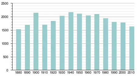 | 1950 | 2104 | -2.7% | |