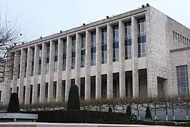Здание библиотеки было построено в 1954—1969 годах. Здание занимает площадь в тринадцать тысяч квадратных метров, общая площадь помещений библиотеки составляет шестьдесят семь тысяч квадратных метров. Библиотека имеет десять надземных и шесть подземных этажей. Общая протяжённость книжных полок — 150 километров.
