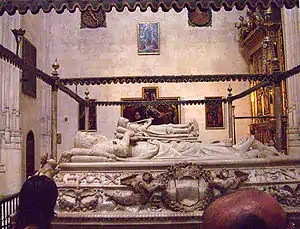 - Надгробие католических монархов, выполненное из каррарского мрамора флорентийским скульптором Доменико Фанчелли к 1517 г. Согласно испанской традиции, иконография изображения короля имеет милитаристский аспект — Фердинанд облачён в полный доспех. Изабелла изображена просветлённой и скромной. Данное надгробие — пример перенесения на испанскую почву типа, разработанного Полайоло для гробницы папы Сикста IV.