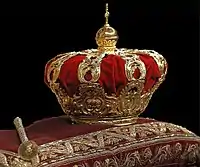 Королевская корона Испании, использовавшаяся при коронации Филиппа VI, была сделана в 1775 году королевским серебряным мастером Фернандо Веласко по приказу короля Карла III и может быть оценена (без учёта её исторической ценности) не более чем в 1200 евро[2]. Корона изготовлена из позолоченного серебра, имеет шесть лепестков с геральдической символикой, символизирующих испанские колонии в Америке, имеет 390 мм в высоту, максимальный диаметр 400 мм и кольцо диаметром 185 мм, предназначенное для удержания короны на голове. Вес короны — порядка одного килограмма. Эта корона лежит на подушке во время церемоний коронаций и похорон монархов и никем не надевается. Согласно установившейся традиции, короли Испании не носили корону со времён католических королей — Изабеллы I Кастильской (1451—1504) и короля Фердинанда II Арагонского (1452—1516). Начиная с Карла V монархии Испании обычно изображались без короны или с короной, лежащей на подушке.