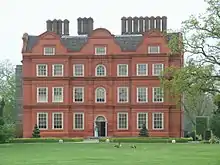 Дворец Кью — самый маленький из британских королевских дворцов. Он был построен голландским купцом Сэмуэлем Фортри (англ. Samuel Fortrey) примерно в 1631 году. При строительстве применялась кладка кирпичей попеременно длинными и короткими сторонами («фламандский ряд»). Эта кладка и остроконечная крыша придали зданию характерные голландские черты. В 1728 году был арендован супругой Георга II королевой Каролиной для дочерей. В дальнейшем в разные годы использовался для разных нужд семьи, служил королевской резиденцией, перестраивался и модернизировался[27]. Здание претерпело значительные изменения, прежде чем было открыто для посещений публики в 2006 году[28].