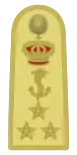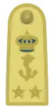 | Итальянское звание | Grande ammiraglio | Ammiraglio d'armata | Ammiraglio designato d'armata | Ammiraglio di Squadra | Ammiraglio di Divisione | Contrammiraglio | Capitano di Vascello | Capitano di Fregata | Capitano di Corvetta | Primo Tenente di Vascello | Tenente di Vascello | Sottotenente di Vascello | Guardiamarina | Aspirante Guardiamarina | |