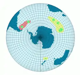 ![]() Ареал подвида A. p. patagonicus Ареал подвида A. p. halli Места размножения |