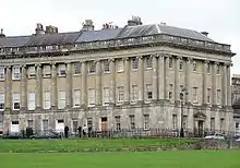 Вуд спроектировал изогнутые фасады тридцати трёхэтажных зданий с ионическими колоннами на рустованном цокольном этаже высотой 5,2 метра. Диаметр колонн 76 см, высота колонн, соответственно, 1:10 и равна 7,6 метра, общая высота здания 14,3 м, число колонн — 114. Антаблемент имеет высоту 1,5 м. Центральное здание имеет четыре парные колонны.[2]