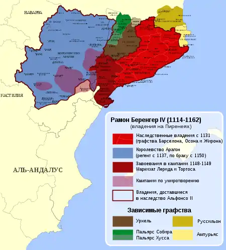 Брак между Петронилой и Рамоном Беренгером был заключён в 1150 году. Этот брак стал первым шагом к образованию так называемой Арагонской короны — объединение нескольких государственных образований под властью королей Арагона. Рамон Беренгер владел большей частью Каталонии. Ряд графств (Барселона, Осона, Жирона и Сердань) находились под его непосредственным управлением, а некоторые находились от него в вассальной зависимости. Также с 1144 года он был регентом Прованса, где правил его малолетний племянник, Раймонд Беренгер II[1][2][8][9][10].