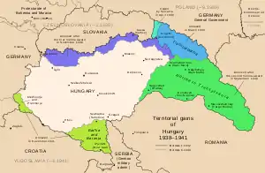 С 1938 по 1941 гг. Венгрия за счёт аннексий вдвое увеличила свою территорию (см. Венский арбитраж)