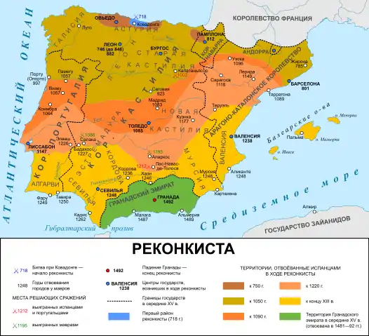 Во время своего правления Альфонсо VI вёл успешные войны с мусульманскими правителями Испании, а в 1085 году захватил тайфу Толедо, что имело важные военные последствия. Город Толедо впоследствии стал важным стратегическим центром Реконкисты, а также выдающимся культурным центром. Другие мусульманские эмиры после падения Толедо стали искать покровительства Альфонсо, который стал называть себя «властелином людей двух религий». Однако после того, как мусульманские правители призвали на помощь Альморавидов, вторжение которых остановило завоевания Альфонсо VI, разбитого в 1086 году в битве при Заллаке. Однако альморавидские правители не смогли воспользоваться плодами своих побед, но основные завоевания Альфонсо VI смог сохранить[4].