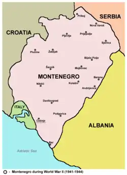 После ухода итальянской администрации Черногория была поставлена под полный контроль Германии, при этом не затихала кровавая партизанская война. За этот период десятки тысяч граждан были убиты оккупантами. В декабре 1944 года немецкие войска ушли из Черногории, и Народно-освободительная армия Югославии Иосипа Броз Тито вернула территорию под контроль Югославии, в дальнейшем ставшей социалистической.