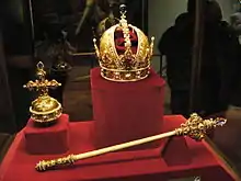 Корона, скипетр, и держава хранятся и экспонируются во дворце Хофбург в Вене, Австрия.