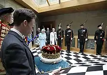 Корону также выносили на первом собрании современного шотландского парламента в 1999 году, а также на официальном открытии парламента в 2004 году. В торжественных случаях по традиции корону выносит герцог Гамильтон.