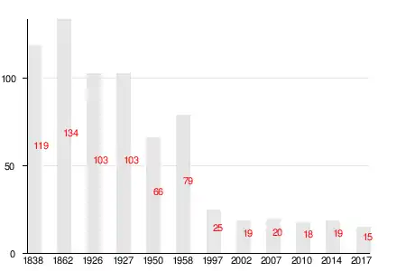 | 1838 | 1862 | 1926 | 1927[19] | 1950 | 1958[20] | 1997 |
