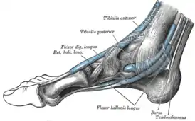 | Кровоснабжение | a. tarsea lateralis, r. perforans a. peroneae |