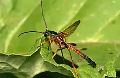 Голова, переднеспинка, щиток и низ груди чёрные. Усики светло-рыжие или рыжевато-красные, иногда на вершине с буроватым оттенком. Ноги светло-рыжие; вершина задних бёдер чёрная. Надкрылья красновато-рыжие, иногда с зачернённой вершиной. Брюшко чёрное; часто на её основании в области первого, второго и третьего стернитов красновато-рыжая[6].