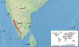Обитает в западной Индии (штаты Керала, Карнатака, Тамилнад). Любит влажные тропические леса. Встречается на высоте до 2000 метров над уровнем моря. Активна ночью. Питается насекомыми.