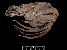 Окрас кожи варьирует от белого (молочного) до телесного (как у белых людей) цвета. У этой рыбы небольшие зубы, что не свойственно для удильщикообразных.