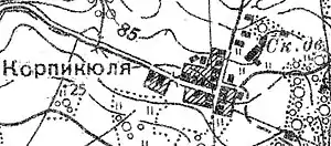 Деревня Корпикюля (хутор Коркюля) упомянута на карте 1885 года.