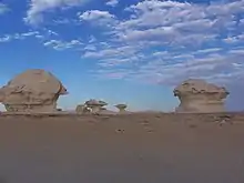 Корразия проявляется в разрушающем действии ветра на горные породы. Корразия возникает при воздействии переносимых ветром песчаных и пылеватых частиц на обнажения твёрдых горных пород. В результате ветровой шлифовки скал, камней, строений и механизмов формируются ниши выдувания, грибовидные образования и другие специфичные формы в выступах твёрдых или скальных пород[1].