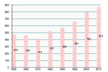 | 1962 | 1968 | 1975 | 1982 | 1990 | 1999 | 2006 | 2011 | 2012 |