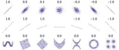 Математической мерой корреляции двух случайных величин служит корреляционное отношение [2] либо коэффициент корреляции (или )[1]. В случае если изменение одной случайной величины не ведёт к закономерному изменению другой случайной величины, но приводит к изменению другой статистической характеристики данной случайной величины, то подобная связь не считается корреляционной, хотя и является статистической[3].