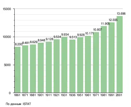 Население составляет 15 118 человек (2008 г.), плотность населения составляет 244 чел./км². Занимает площадь 62 км². Почтовый индекс — 62014. Телефонный код — 0733.