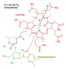 Корриноиды — группа веществ, в основе которых лежит углеродный скелет коррина — макроцикла, схожего по строению с порфирином, который состоит из четырёх пиррольных колец. К этой же группе относятся соединения, структура которых базируется на корроле[2].
