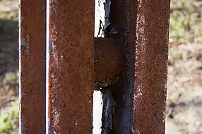 Ржавчина является одной из наиболее распространённых причин аварий мостов. Так как ржавчина имеет гораздо больший объём, чем исходная масса железа, её наращивание может привести к неравномерному прилеганию друг к другу конструкционных деталей. Это стало причиной разрушения моста через реку Мианус в 1983 году, когда подшипники кронштейна моста проржавели внутри. Три водителя погибли при падении в реку. Исследования показали, что сток дороги был перекрыт и не был почищен, а сточные воды проникли в опоры моста[12]. Согласно исследованию Национального совета по безопасности на транспорте, разрушение моста было вызвано механической поломкой наружного кронштейна, удерживающего пролёт моста и его обоих штифтов. Ржавчина образовалась в подшипнике штифта. А так как её объём всегда гораздо больше, нежели исходная стальная деталь, это привело к неравномерному прилеганию друг к другу частей конструкции. В случае с мостом, ржавая масса отодвинула внутренний кронштейн от конца штифта, скрепляющего между собой наружный и внутренний кронштейны. (При этом возникло усилие, превышающее проектные пределы для зажимов, удерживающих штифты!) Из-за этого вся масса пролёта переместилась на внешний кронштейн. Эта дополнительная нагрузка на него вызвала усталостную трещину в штифте. Когда два тяжелых грузовика въехали в данную секцию моста, штифты окончательно вышли из строя, и пролёт моста упал в реку…