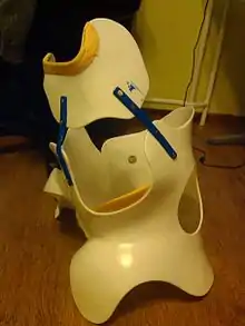 Корсет Шено изготовлен из термопластических материалов(пластик, полиэтилен) и представляет собой жёсткую гильзу. Внутри неё расположены зоны давления, противоположно которым расположены зоны расширения, представленные отверстиями (камерами). Задача этих камер- приём тканей, которые будут смещаться в нужном направлении в процессе коррекции. Застёгивается корсет с помощью ремней (липучек). В большинстве случаев у пациента приподнято плечо для придачи нужной позы коррекции.