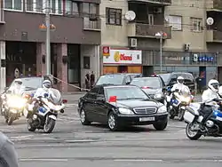 - Автомобиль или мотоциклы дорожной полиции (с включёнными проблесковыми маячками).