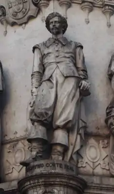![]() Скульптура Ж. Корте Реала на пьедестале памятника Л. де Камоэнсу. Площадь Шиаду, Лиссабон | |