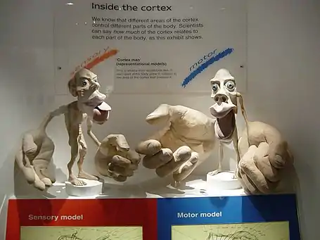 Корковый гомункул или «человек коры головного мозга» иллюстрирует концепт репрезентации ложного (искаженного) тела человеческим мозгом. Нервные волокна, проводящие соматосенсорную информацию со всего тела, заканчиваются в различных областях теменной доли коры мозга, образуя репрезентативную карту тела.