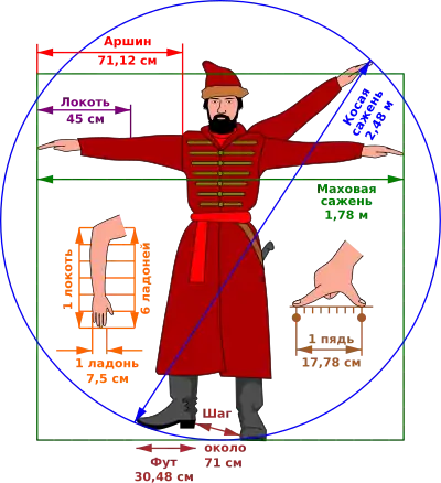 Соотношение единиц длины с пропорциями тела человека.