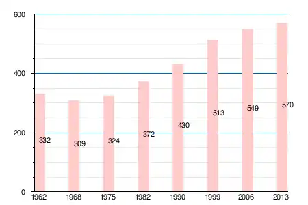 Население коммуны в 2011 году составляло 566 человек[6], в 2012 году — 568 человек[7], а в 2013-м — 570 человек[5].