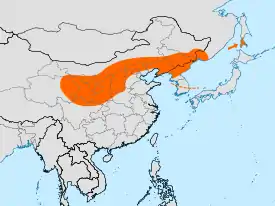 Вне России гнездовой ареал вида охватывает горные местности Северной Кореи, Северо-Восточного, Северного и Юго-Западного Китая.