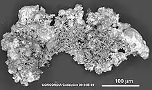 Термин «звёздная пыль» относится к тугоплавким пылевым частицам, которые формировались из газов, выбрасываемых протозвёздными объектами в облако, из которого формировалась Солнечная система[24]. Частицы звёздной пыли (также называемые в метеоритике досолнечными зёрнами[25]) содержатся в метеоритах. Звёздная пыль до попадания в состав метеоритов была компонентом пыли в межзвёздной среде со времён начала формирования Солнечной системы, более четырёх миллиардов лет назад. Так называемые углистые хондриты являются наиболее богатыми источниками звёздной пыли.