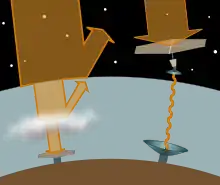 Система предполагает наличие аппарата-излучателя, находящегося на геостационарной орбите. Предполагается преобразовывать солнечную энергию в форму, удобную для передачи (СВЧ, лазерное излучение), и передавать на поверхность в «концентрированном» виде. В этом случае на поверхности необходимо наличие «приёмника», воспринимающего эту энергию[10].